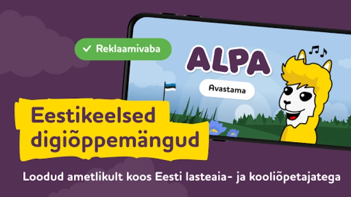 ALPA Kids tarjoaa 3-8-vuotiaille lapsille mukaansatempaavia digitaalisia oppimispelejä. Opi numeroita, aakkosia, muotoja ja Viron luontoa viron kielellä paikallisen kulttuurin ja luonnon esimerkkien kautta. Kehitetty yhteistyössä kasvatusteknologien ja lastentarhaopettajien kanssa.