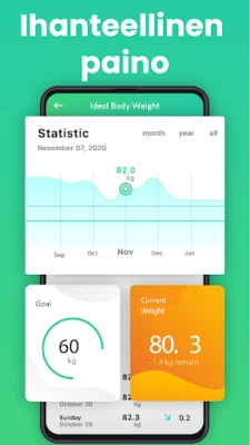 Päivittäisen kaloritarpeen laskuri mukautuu aktiivisuustasoosi – olitpa sitten vähäaktiivinen tai erittäin liikunnallinen. Terveyslaskin-sovellus ei ainoastaan laske tarvittavia kaloreita, vaan se myös visualisoi, miten paljon energiaa tarvitset painonnousuun, -laskuun tai nykyisen painon ylläpitämiseen, antaen sinulle selkeän tiekartan tavoitteisiisi. Älä unohda myöskään elintärkeää nesteytystä; Terveyslaskin-sovelluksen vedenkulutuslaskuri määrittää optimaalisen päivittäisen vesimäärän painosi mukaan. Lisäksi ihannepainolaskuri auttaa sinua löytämään henkilökohtaisen tavoitepainoalueesi sukupuolen, pituuden ja kehonrakenteen perusteella, tarjoten realistisen kuvan terveellisestä painosta.