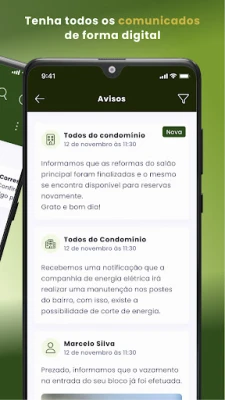 Condomínio Jardim Botafogo pitää sinut ajan tasalla ja helpottaa päivittäistä elämää. Vastaanota reaaliaikaisia ilmoituksia suoraan taloudenhoitajalta tai hallitukselta tärkeistä tiedotteista, ilman enää hissiin liimattuja lappuja. Varaa yhteiset tilat, kuten grillipaikka tai juhlasali, vaivattomasti muutamalla napautuksella suoraan sovelluksesta, ilman tarvetta soittaa portinvartijalle tai tarkistaa paperikalentereita. Entä pakettisi? Portinvartijat kuvaavat saapuvat lähetykset, ja sinä saat ainutlaatuisen QR-koodin noutoa varten, varmistaen turvallisen ja selkeän paketin toimituksen.