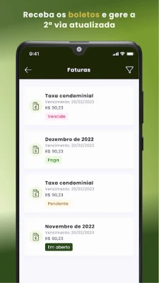 Turvallisuus ja sujuva hallinto ovat Condomínio Jardim Botafogon ytimessä. Saat ilmoituksen, kun vierailijasi, kuten "Siivooja Maria", saapuu taloyhtiöön, mikä antaa sinulle täyden kontrollin sisään- ja uloskäynneistä. Taloyhtiömaksujen hallinta on myös yksinkertaistettu: vastaanota lasku sovellukseen, kopioi viivakoodi yhdellä klikkauksella verkkopankkiin, tai luo helposti uusi lasku eräpäivän mentyä umpeen. Huomaatko rikkinäisen lampun? Raportoi havainnot ja tee vikailmoitukset helposti ottamalla kuva ja lähettämällä se suoraan hallinnolle. Pysy myös ajan tasalla kaikista suunnitelluista huolloista, kuten vesitornin puhdistuksesta, ja varmista, että taloyhtiön toiminta on aina ennakoitavaa ja läpinäkyvää.