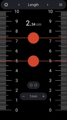Käyttäjäkokemus on suunniteltu saumattomaksi ja intuitiiviseksi, täysin ilman mainoksia tai tarpeettomia lupapyyntöjä. Tämä monipuolinen työkalu tukee sekä metrisiä (cm) että brittiläisiä (tuumaa) yksiköitä, tarjoten tuumille myös murto- tai desimaalimuotoisen esityksen. Automaattitilassa voit säätää askelkokoja tarpeesi mukaan, ja tarkkuussäätöliukusäädin mahdollistaa nopeat hienosäädöt. Kahdella itsenäisellä kohdistimella, jotka tukevat monikosketusta, mittaaminen on joustavaa ja tehokasta. Lisäksi saatavilla on valinnainen puhetoiminto, joka parantaa esteettömyyttä ja käyttömukavuutta. Tämä ratkaisu on kehitetty tarjoamaan luotettavia ja tarkkoja mittaustuloksia vaivattomasti, suoraan kätesi ulottuvilla.