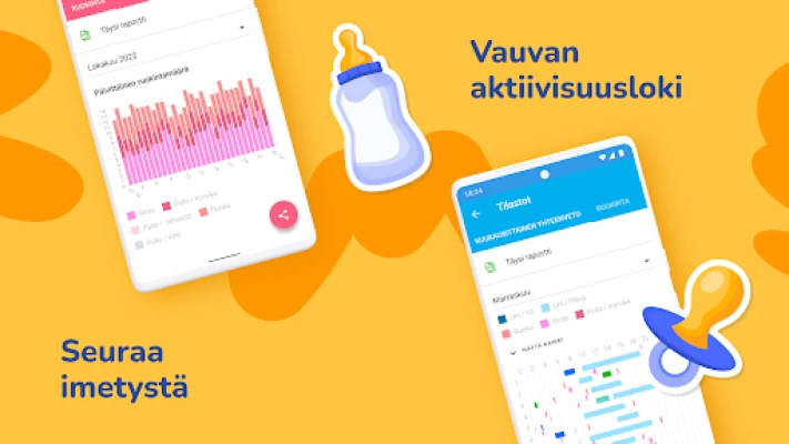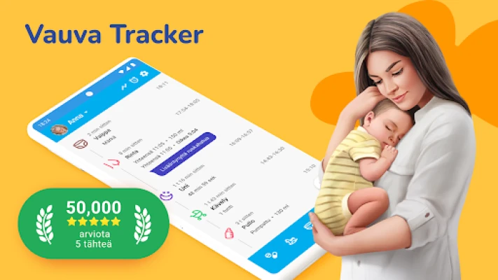 Kattava apuri vastasyntyneen imetykseen ja hoitoon. Seuraa helposti imetystä, pulloruokintaa, kiinteitä ruokia ja maidon pumppausta. Tallenna myös vaipanvaihdot, uniajat sekä vauvan pituus- ja painomittaukset. Tukee vanhempia vauvanhoidon arjessa.