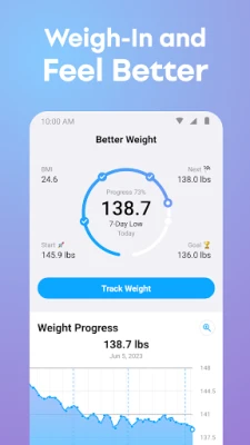 Painonhallintamatka voi olla haastava, mutta Better Weight muuttaa sen motivoivaksi ja saavutuksia täyteen. Olipa tavoitteenasi pudottaa tai lisätä painoa, Better Weight on suunniteltu tukemaan sinua jokaisessa vaiheessa. Sovellus auttaa sinua jakamaan suuret päämäärät pienemmiksi, helposti saavutettaviksi virstanpylväiksi, tehden edistymisestäsi konkreettista ja palkitsevaa. Visualisoi matkaasi askel askeleelta ja löydä uusi tapa pysyä motivoituneena kohti henkilökohtaisia tavoitteitasi.