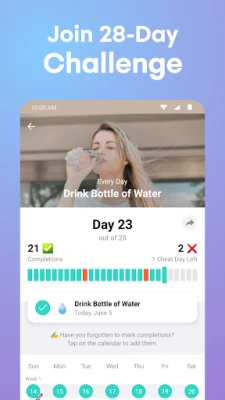 Better Weightin intuitiivinen käyttöliittymä mahdollistaa painosi ja kehonmittojesi vaivattoman kirjaamisen. Laske painoindeksisi (BMI) ja tarkastele kehitystäsi selkeillä päivä-, viikko- ja kuukausikohtaisilla kaavioilla. Sen sijaan, että keskittyisit päivittäisiin heilahteluihin, Better Weight korostaa merkityksellisiä 7 päivän alhaisimpia lukemia ja pidemmän aikavälin trendejä, tarjoten realistisen kuvan todellisesta edistymisestä. Uppoudu valikoituun 28 päivän haasteiden kokoelmaan: ne ovat terveellisiä tapoja, jotka ohjaavat sinua matkallasi. Valitse itsellesi sopivat haasteet – kuten päivittäinen liikunta, veden juonti tai tasapainoinen ruokavalio – ja säädä vaikeustasoa.